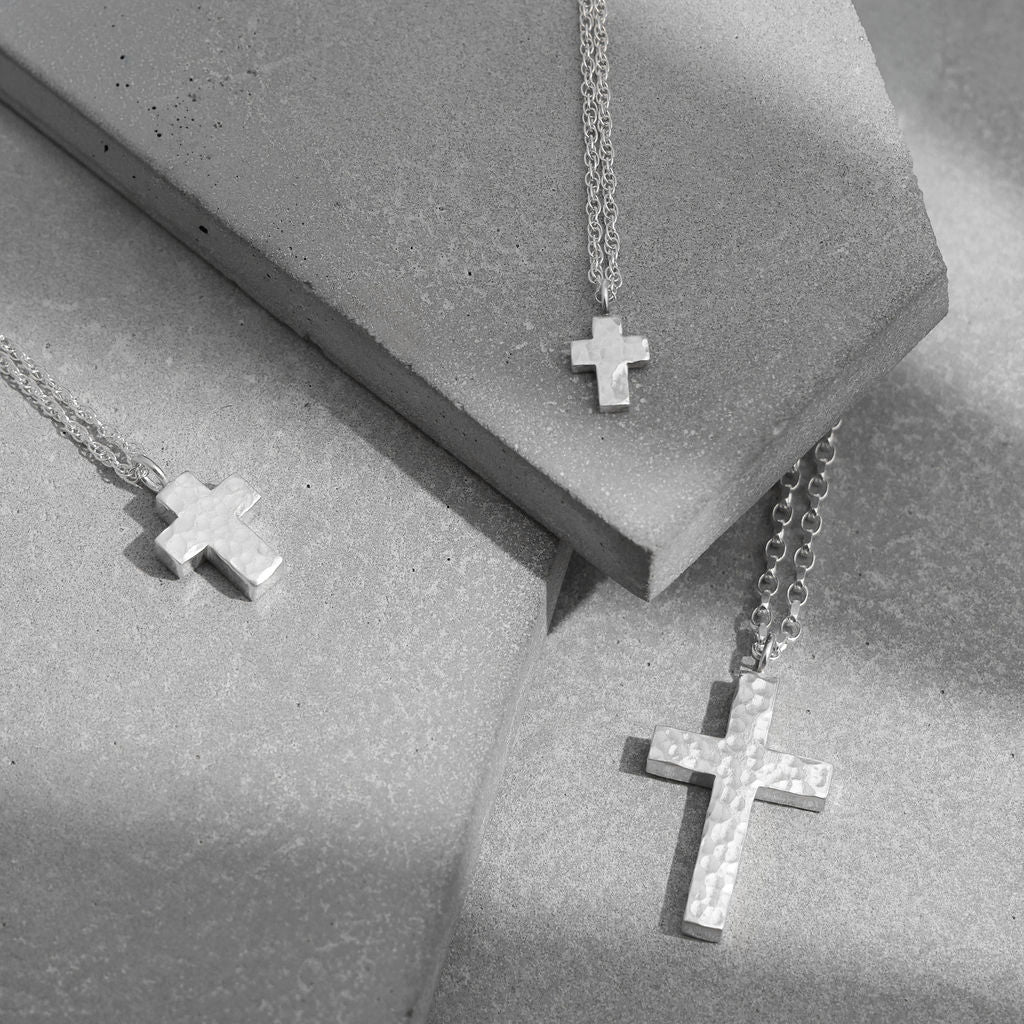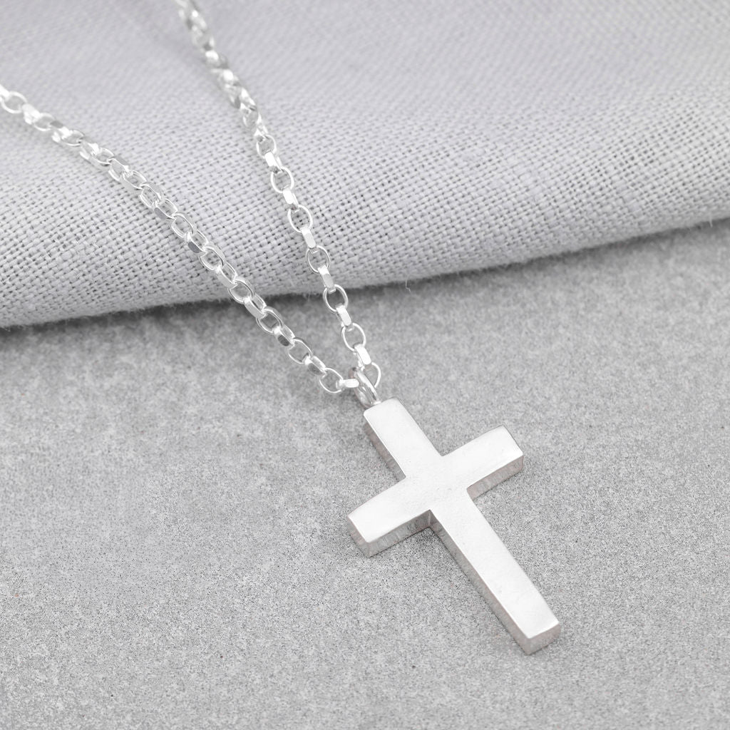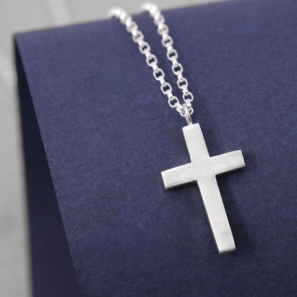 This large sterling silver cross necklace makes a thoughtful and lasting gift for baptisms, confirmations, graduations, or as a personal keepsake: a piece to treasure as a daily reminder of faith and strength.