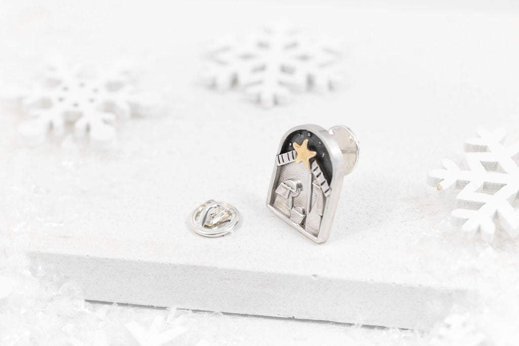 Cast in recycled sterling silver, every detail has been thoughtfully designed and hand-finished to capture the quiet wonder of the Christmas story. The layered metal design and varied textures create lovely depth and dimension, giving the piece a soft 3D feel.